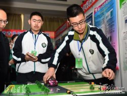 2月9日,一名中学生在演示他和同学设计的基于互联网和移动客户端的共享车位系统。记者赵永辉摄 河北新闻网2月9日讯(记者张怀琛通讯员李世杰)2月6日至9日,第33届河北省青少年科技创新