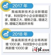 精准服务搭好平台刺激生长促进转化 河北省力促科技创新主体高强度增长 制图/展茂光 河北新闻网讯(记者郭伟)2018年河北省高新技术企业和科技型中小企业将分别再新增1000家、10000家。记者