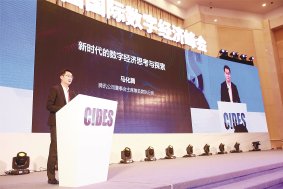 腾讯公司董事局主席兼首席执行官马化腾作主题演讲。记者闫思宇摄 □记者吴新光 11月23日上午,腾讯公司董事局主席兼首席执行官马化腾现身石家庄太行国宾馆。当天,腾讯公司与雄安新区